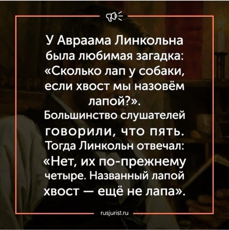 А если лапы назвать хвостами? Сколько у собаки будет хвостов? Ответ дам завтра.