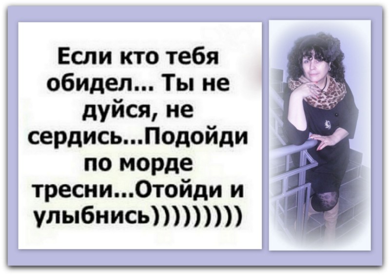 Иван, конечно же я с Вами согласна! ОБИЖАТЬ НЕЛЬЗЯ НИКОГО! А комментарии мои для того, чтобы люди улыбнулись! Чтобы утро началось с улыбки. С добрым утром (правда, у Вас уже далеко не утро а Красноярске), Иван, и прекрасного Вам воскресенья!