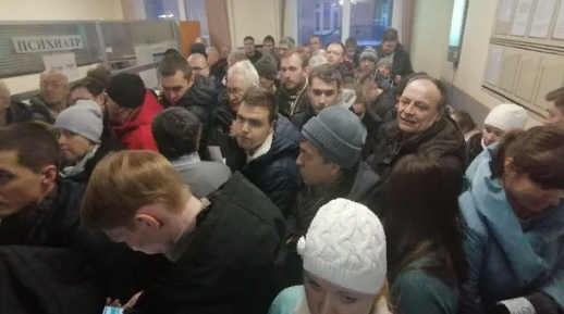 Представьте себе поликлинику с ее узкими коридорами. Вот именно в таких коридорах стоят люди сотнями – в духоте и давке. Увидев фото – меня это не только возмутило. Считаю это унизительным актом, направленным на оскорбление людей. Ужас просто. Честно? Я не хотела бы там стоять.