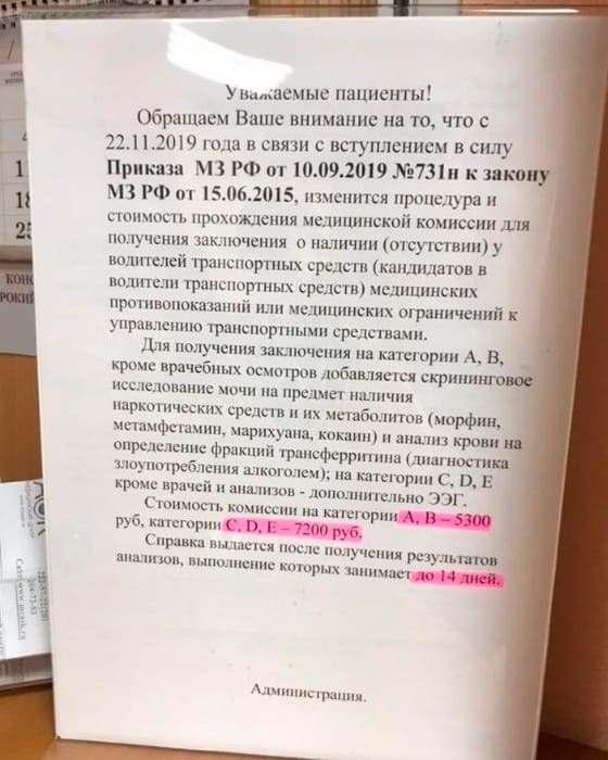 Но главное изменение – это стоимость медицинской справки – если раньше за все исследования платили из бюджета, так как они обуславливались наличием симптомов, то сейчас всё делается за счёт водителя.
