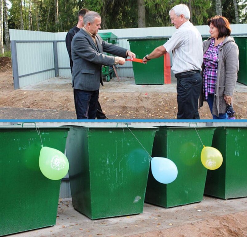 Торжественная установка мусорных баков с участием единороссов, ленточек и шариков, прошли в Махачкале, , Новокузнецке, и в двух счастливых населенных пунктах Тверской области.