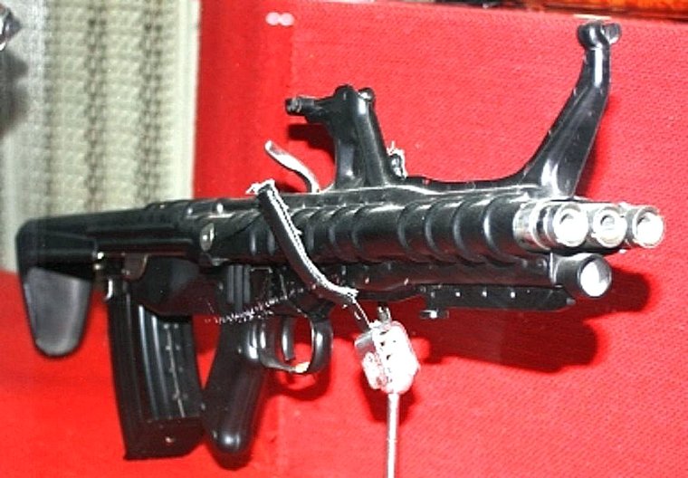 По плану создателя, автомат должен был после нажатия на спусковой крючок давать сверхбыструю очередь из всех трех стволов. Отдача от выстрелов при этом просто не успевала отклонить оружие, так что все пули летели точно туда, куда нужно.