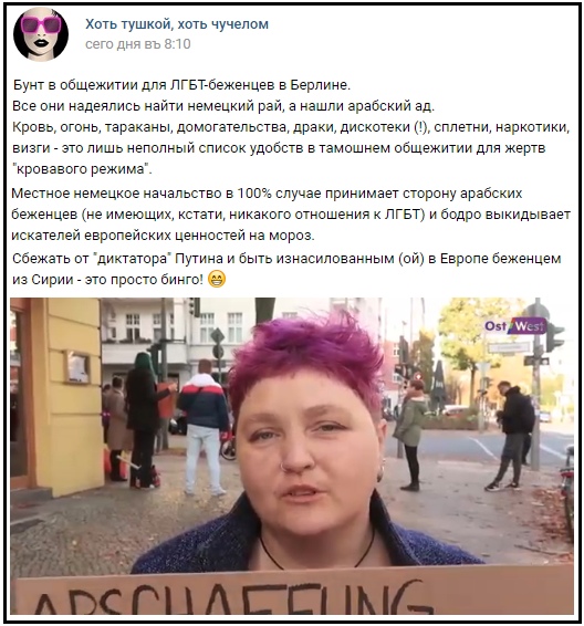 Известная российская веганка и ЛГБТА** изнасилована в Берлине сирийскими беженцами !?