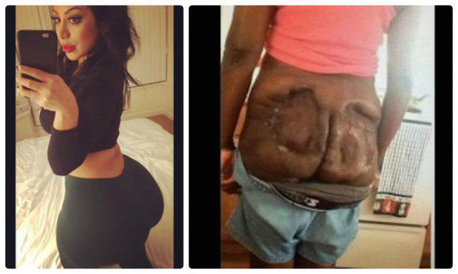 Ради дешевых инъекций женщины отправляются в совсем уж странные места, где им могут вколоть те же промышленный силикон и пасту для покрышек. Результатом может быть серьезная инфекция, жуткие шрамы, уродство и даже угроза жизни. Если же все пройдет «успешно», то они получат частично «зацементированный» зад, который никогда не будет выглядеть натурально.