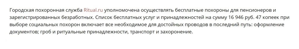 ~за похороны безработных — по стоимости гарантированного набора ритуальных услуг из бюджета субъекта РФ.