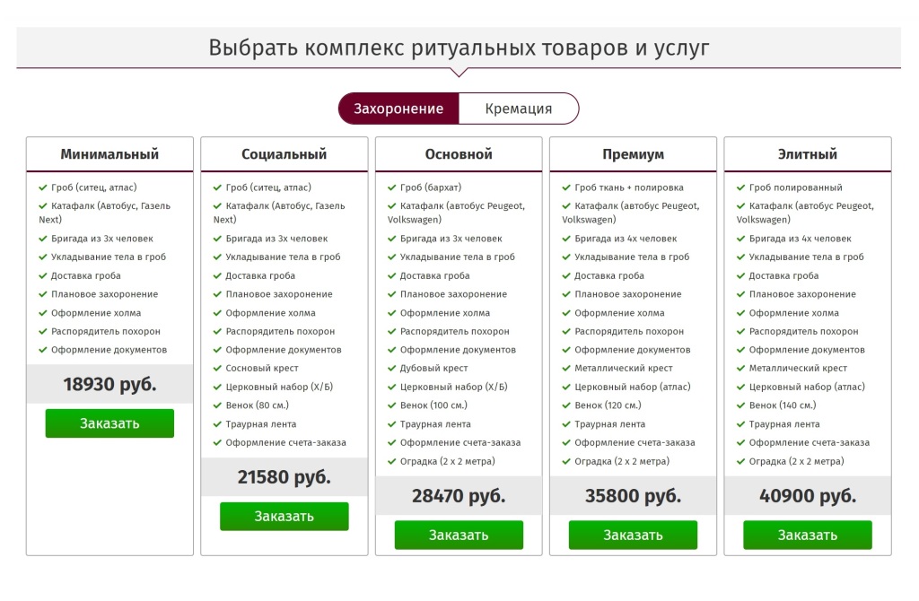 Гарантированный набор ритуальных услуг..