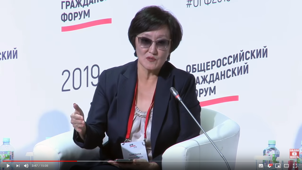 Не буду пересказывать её слова, посмотрите сами выступление Сарданы Авксентьевой на ОбщеРоссийском Гражданском Форуме 2019