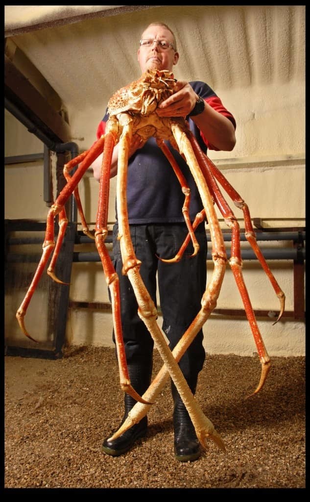 Один из самых крупных представителей членистоногих: крупные особи достигают 45 см длины карапакса и 3 м в размахе первой пары ног. Питается моллюсками и остатками животных; живет предположительно до 100 лет. Выглядит устрашающе, не так ли?