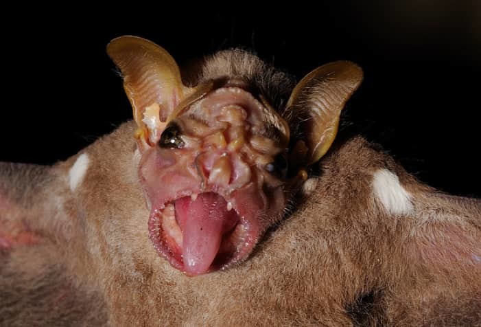 Люди и так боятся летучих мышей, что уж говорить об этом виде... Эти складки на морде помогают летучей мыши в эхолокации, поэтому ей проще поймать добычу. Отлично адаптирована к окружающей среде, обитает в Центральной и Южной Америке.