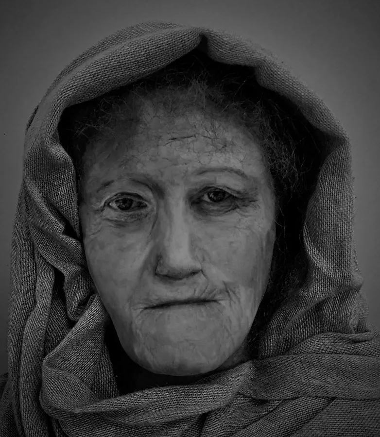 Флеминг реконструировала внешность по черепу, хранящемуся в Эдинбургском университете. Его нашли на Гебридских островах при раскопах захоронений железного века. Остеологический анализ показал, что это пожилая женщина 60 лет. Факт удивительный, потому что в ту эпоху люди в среднем доживали до 31 года.