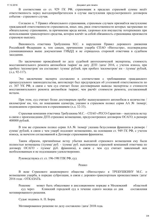 По делу была проведена судебная экспертиза, установившая реальный размер ущерба, который был возмещен СПАО.. ИНГОССТРАХ.. Страховщиком виновника.