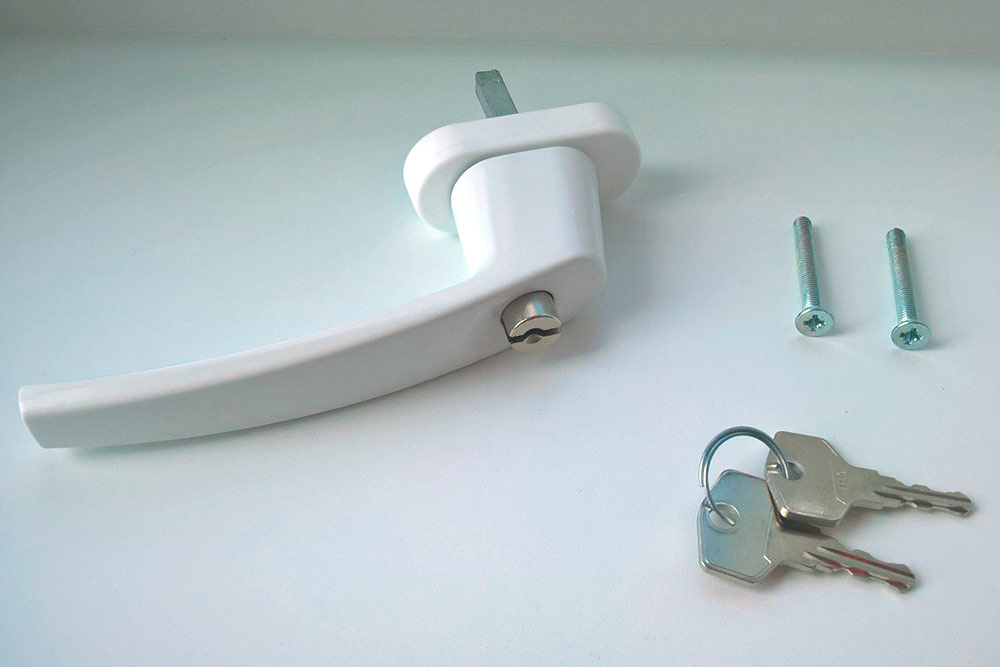 Самый очевидный вариант — ручка с замком. Андрей купил несколько штук за 240 Р в строительном гипермаркете и сам установил их. Заменить ручку просто: нужно открутить крестообразной отверткой два винта, которые держат старую ручку, вставить новую и закрутить винты обратно. В оконной раме не нужно ничего сверлить. На установку одной ручки ушла пара минут.