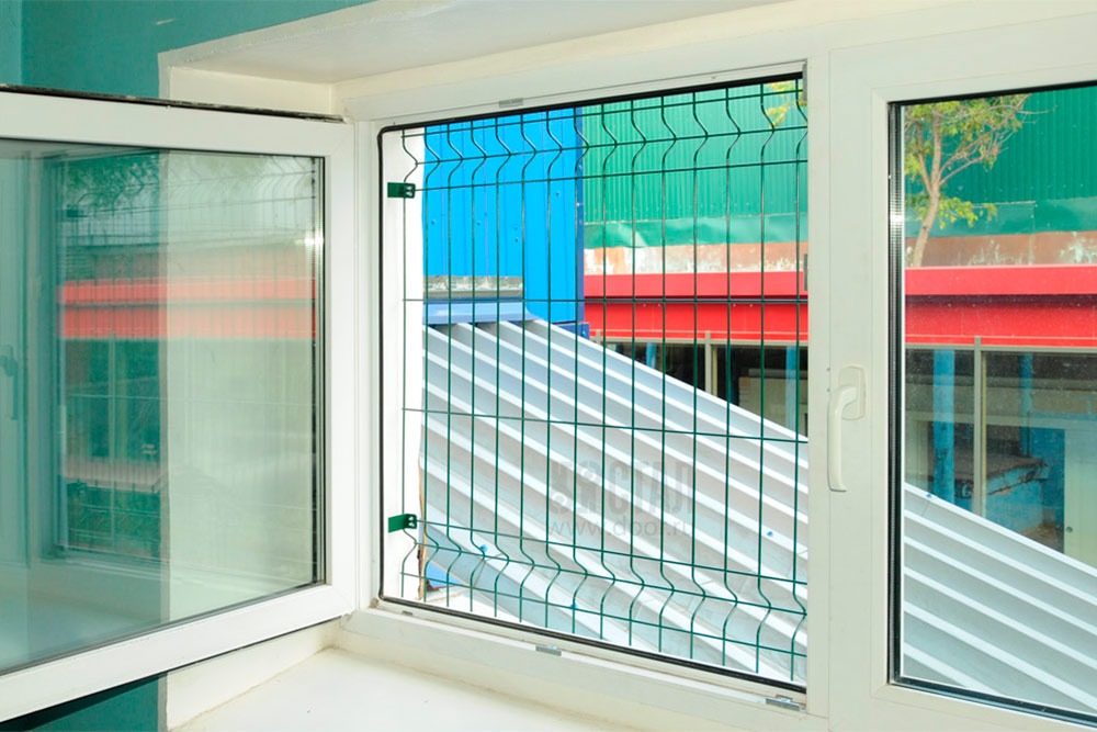 Легкая металлическая решетка вряд ли защитит от воров, но убережет детей и домашних животных от выпадения из окна. Такие решетки крепятся снаружи к оконной раме или стене оконного проема.