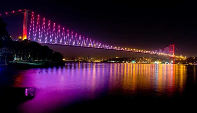 Этот подвесной мост примечателен тем, что соединяет Европу с Азией через пролив Босфор. Длина его - 1560 метров, а ширина 33 метра.