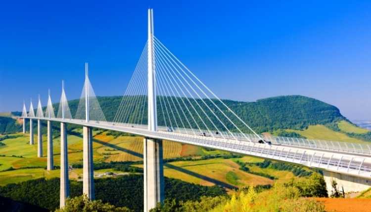 Этот автодорожный мост является самым высоким в мире и находится недалеко от города Мийо во Франции. Высота одной из опор этого вантового моста достигает 341 метра. Сооружение завершает трассу А 75 и дает возможность за деньги (это платный мост), но зато быстро добраться из Парижа в Безье транзитом через Клермон-Ферран.