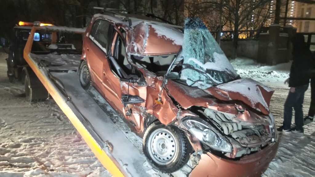 Ранее на севере Петербурга опять нетрезвая автоледи влетела в машину ДПС.