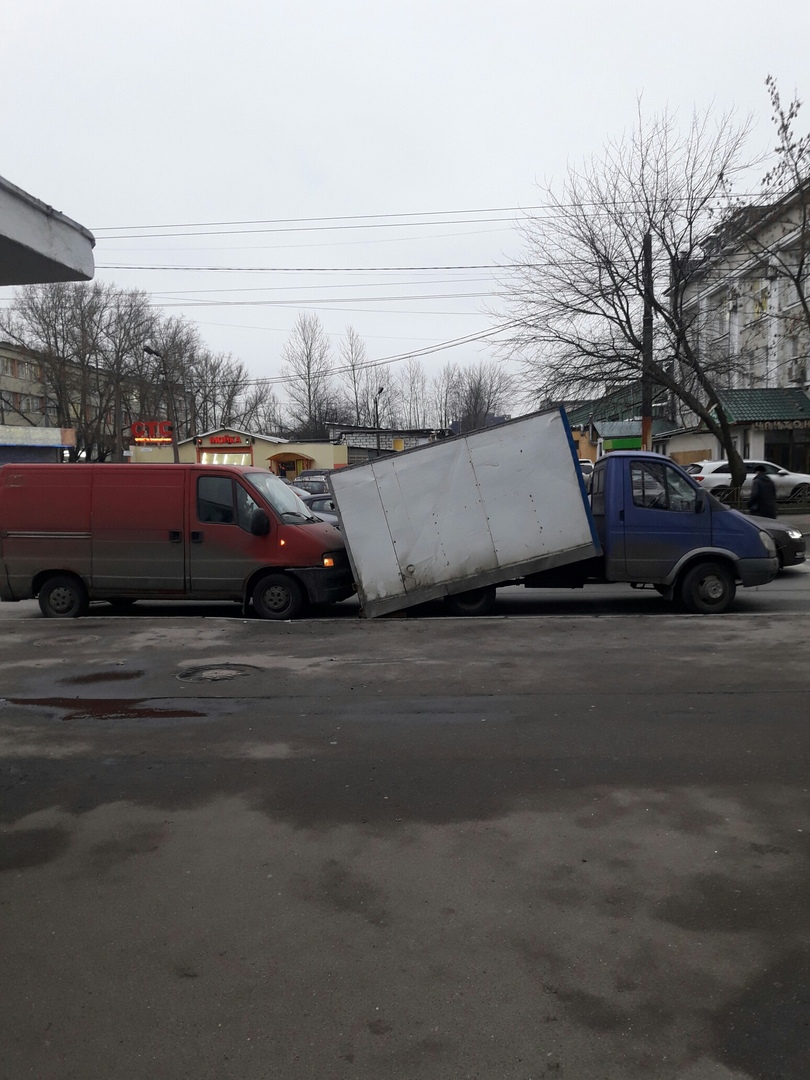 На Чугунной у «Газели» отвалилась будка и придавила бампер фургону