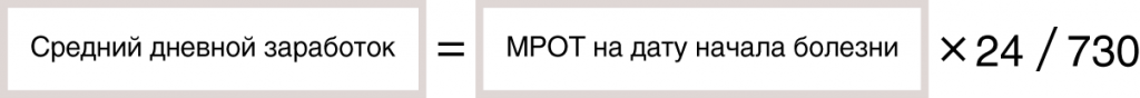 Пример расчета больничного из МРОТ в 2020 году.