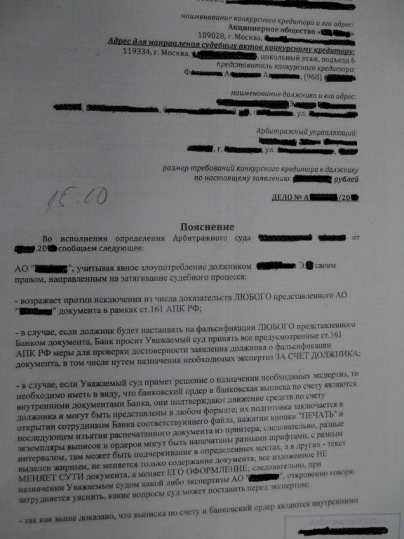 Однако вместо подлинника коллектор снова представил копию ордера, которая по содержанию отличалась от ранее представленной копии документа. Суд в очередной раз запросил подлинник документа, но коллектор представил еще одну копию ордера, которая отличалась по содержанию от ранее представленных копий банковского ордера.