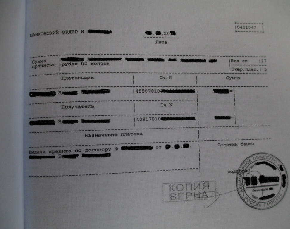С позволения уважаемых читателей представлю на обозрение итоговый, третий вариант копии банковского ордера, чтобы не засорять лишними картинками данную статью.