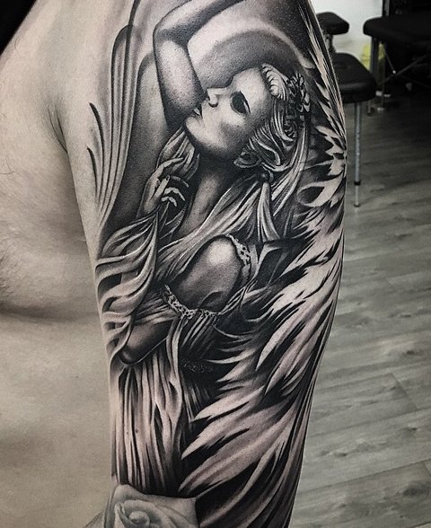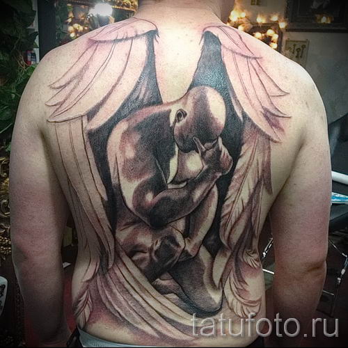 Татуировка ангел часто встречается на теле женщин и мужчин. Она указывает (имеет значение) на то, что человек верит в Бога, а также ищет защиты у своего ангела-покровителя. Такое тату часто означает, что его обладатель хочет уберечь себя от сглаза или порчи.