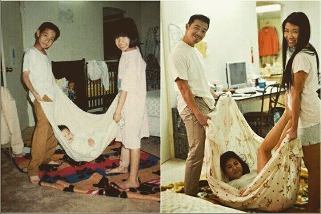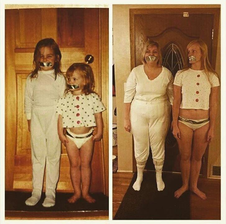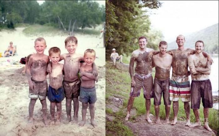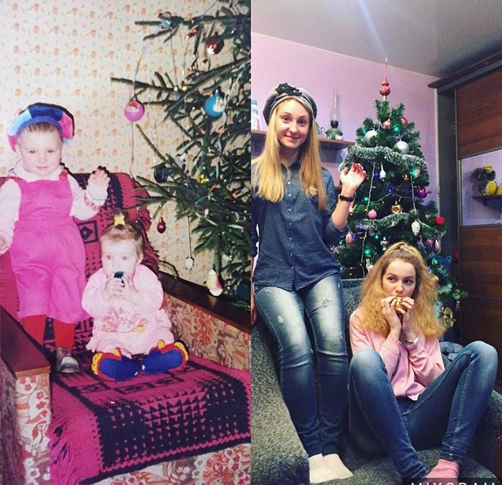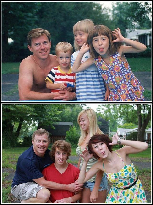 Сегодня я хочу предоставить вашему вниманию семейные фото, которые были пересняты через года. Кому первому пришла в голову эта увлекательная идея, я не знаю, но мне это показалось очень занимательным делом. Давайте просмотрим такие фотки и улыбнёмся...