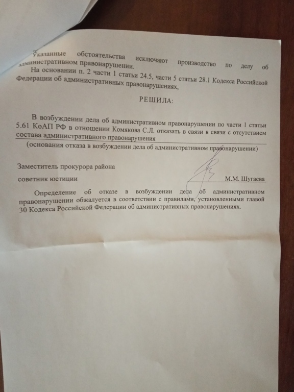 Ко мне сегодня заявился товарищ и принёс аж целых ПЯТЬ определений об отказе в возбуждении дел об административных правонарушениях предусмотренных ч. 1 ст. 5.61 КоАП РФ (оскорбление) .