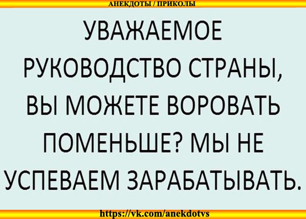 Посему так всё? Просто, как я считаю, рулят страной неумело... Рулят те, кто забивает свои собственные карманы и распродаёт ценности страны направо и налево. Рулят те, которым выгоднее заключить контракты на поставку товара из-за заграницы, чтобы по максимуму срубить на этих контрактах, нежели развивать выпуск данного товара в собственной стране, и именно поэтому при этом "рулении" они загубили множество заводов и фабрик в стране, вместо которых ныне стоят торгово-развлекательные центры.