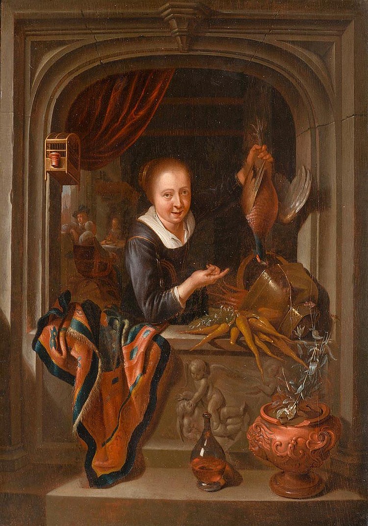 Например, я увидела картину Доминикуса ван Толя, одного из "малых голландцев", мастерски выписывающего детали (прикрепленные файлы картин, которые в Прадо и галереях такого уровня).