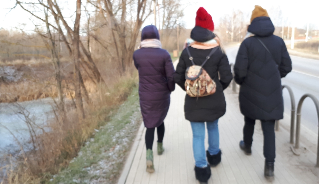 На фото - мы идем с группой школьников в музейный комплекс Истры.