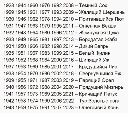 Он был распечатан на нескольких машинописных страницах. Все, к кому попадали эти вожделенные в то время странички, перепечатывали или переписывали от руки новые для нас таинственные, как казалось в ту пору, совпадения с нашими личностными особенностями. В зависимости от того, какое животное «владело» магической силой в год нашего рождения.