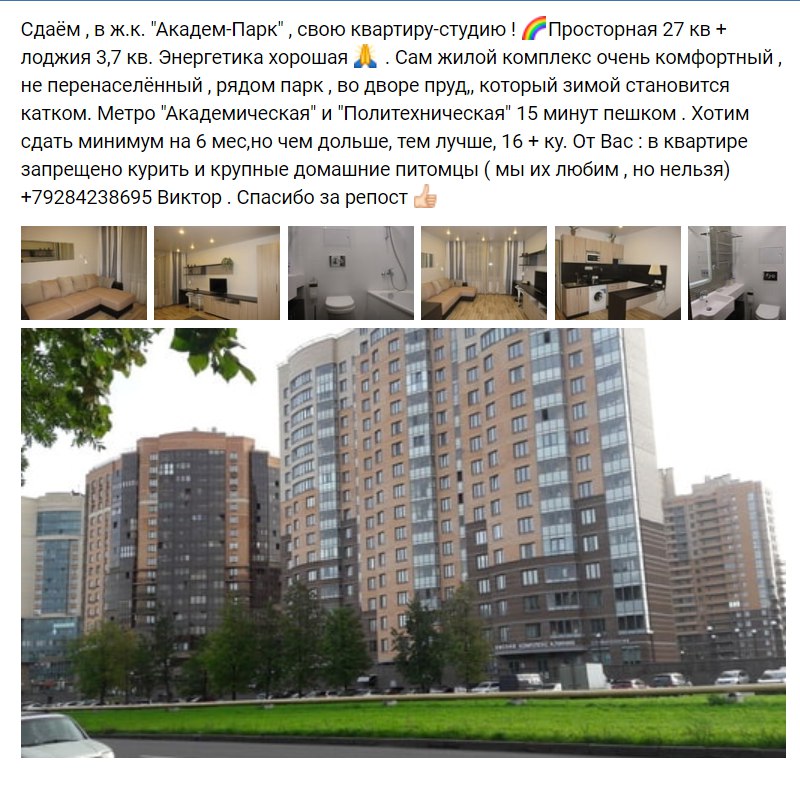 Затем мы выкладываем квартиру на всевозможных досках объявлений и группах ВК. Если квартира взята с Циана, то убираем вотермарки, если с группы ВК, то отзаркаливаем, чтобы фото не могли найти в оригинале.