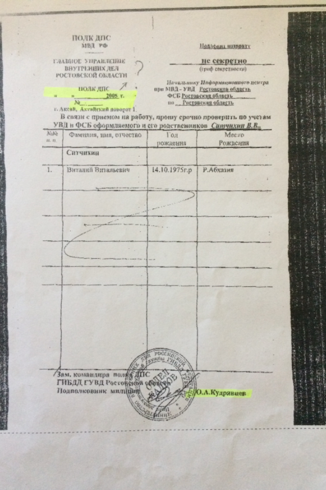 долгие годы органы следствия АРСО СУ СК РФ по Ро так и ГУВД по Ро не принимают мер по установлению лиц причастных к изготовлению и сбыте данного бланка запроса от 2005 г. на котором отсутствует дата моего трудоустройства в правоохранительные органы и исходящий номер, а так же,каким образом следователь прокуратуры Лазаревского района г.Сочи Григорьев Р.В. заполучил его и приобщил к материалу уг.дела N 586871 которое находится в архиве Лазаревского районного суда г.Сочи. Кто нибудь объясните; куда ещё в этой РФ можно обратиться?
