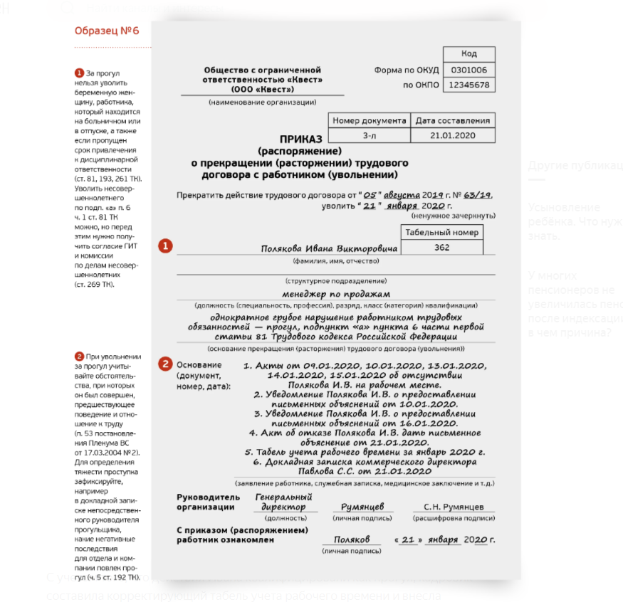 В 2020 году первый рабочий день в ООО «Квест», как и в большинстве организаций, — 9 января. Однако в эту дату менеджер по продажам Иван Поляков на работу не вышел. Непосредственный начальник Ивана и кадровик пытались дозвониться до менеджера, но безуспешно. Он не отвечал на звонки и сообщения, а к вечеру 9 января номер и вовсе стал недоступен. Родственники Ивана тоже не знали, где он. Кадровик составила акт об отсутствии Ивана и поставила в табеле учета рабочего времени код «НН» — неявка по невыясненным причинам.