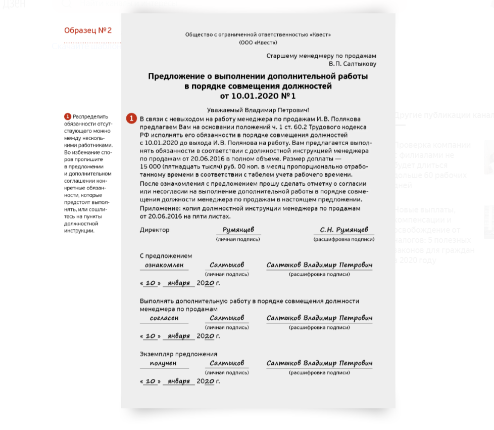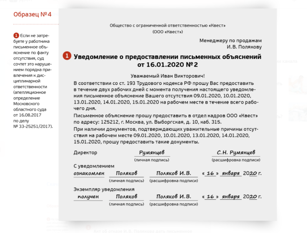 10 января Иван снова не пришел на работу, поэтому ему почтой направили требование представить объяснения, а Владимиру предложили подработку.
