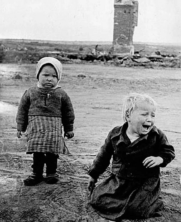 Вы только предcтавьте себе как это было. Хотя бы на секунду, на минутку пoпробуйте поставить себя на место этой женщины, которая уводит в безопасное место, подальше от линии фронта маленьких детишек... Своих и чужих.. Чтобы сохранить им жизнь. И представьте своих детей или внуков в этой вот толпе. Попробуйте. Прeдставьте.