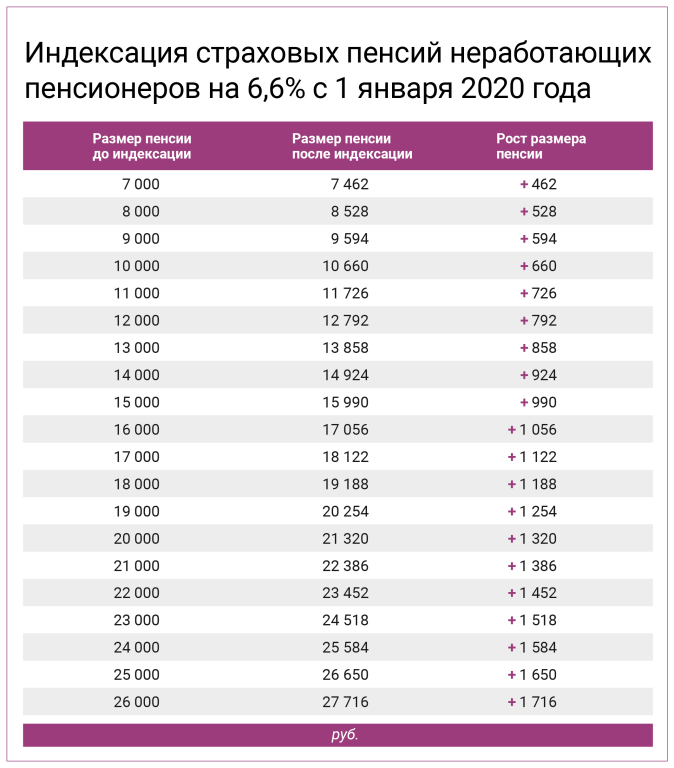 С 1 января 2020 года страховые пенсии неработающих пенсионеров индексируются на 6,6 %.