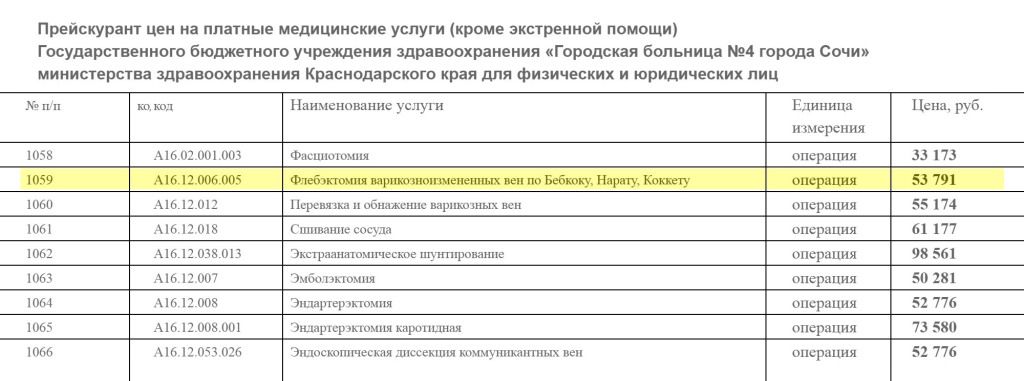 Флебэктомию варикозно измененных вен делают по ОМС или за деньги. В 4-й сочинской городской больнице, где меня оперировали, деньги — это 54 тысячи рублей, на 10 тысяч дешевле, чем в частном медцентре, куда я обратилась сначала..