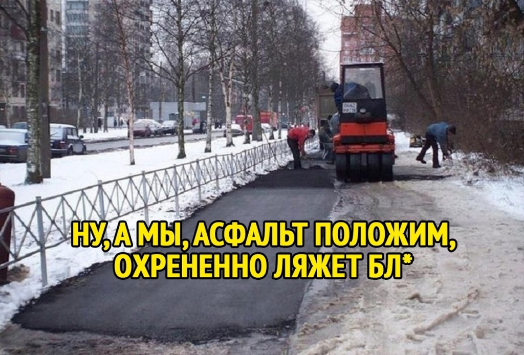 Асфальт воду любит, вот и кладут на водный бассейн, чтоб не жарко было.