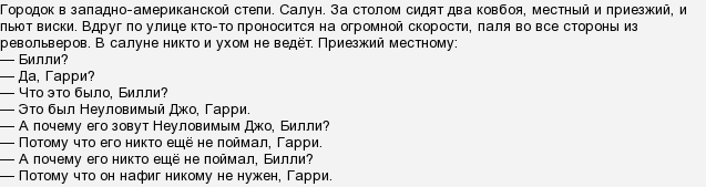 Ха! У них Неуловимый Джо, а у нас тута на сайте тоже есть персонаж и покруче ентого Джо - Невидимый, но всеми Замеченный по пиратским манерам, Анатолий (Москва)!