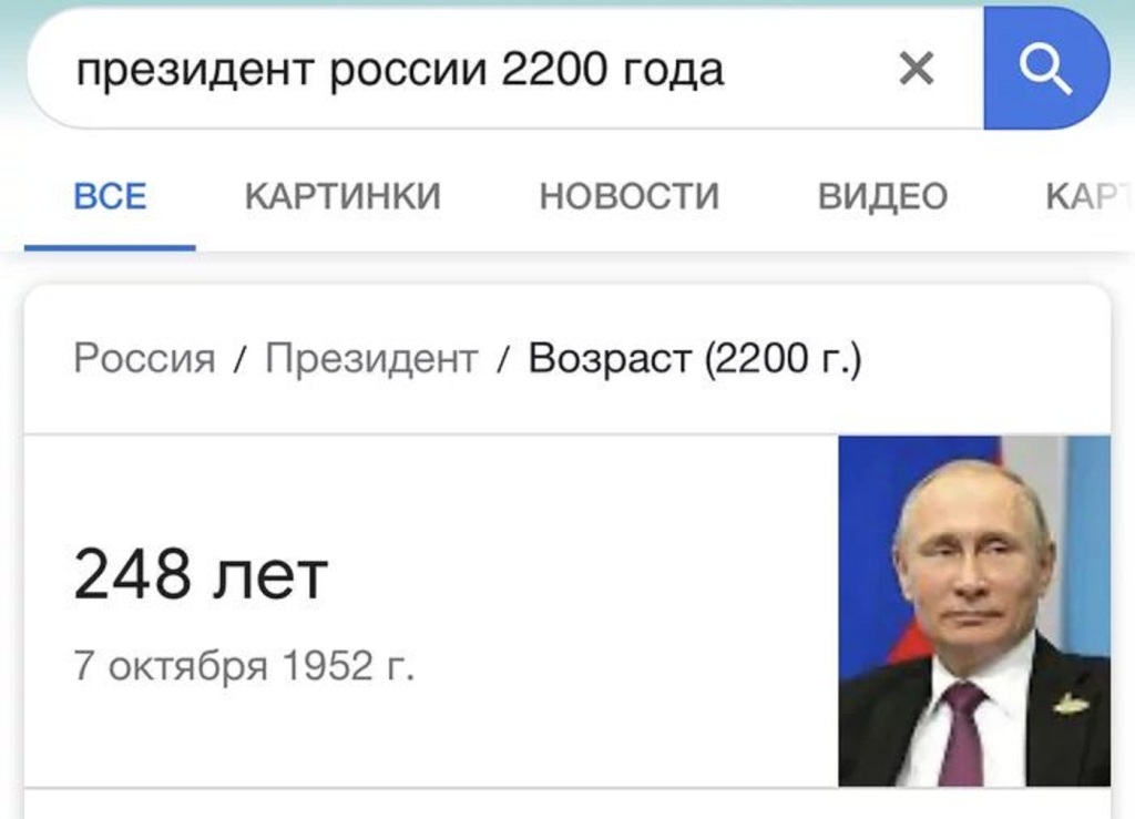 А это, Роман Евгеньевич, к вопросу о величии России, в которой, среди 145 миллионов населения, ну никак не найти хоть одного приличного человека для Президентства. Только гебешный светоч, да еще кое кто из его окружения.