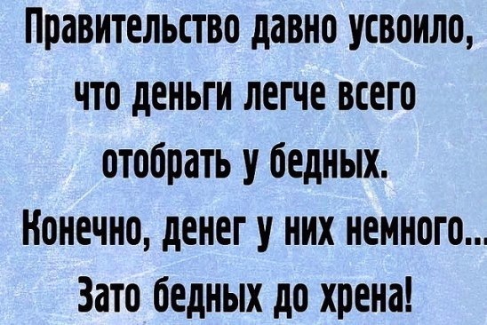 Но я его понял так. Что смысла нет бедных освобождать от налога. Все равно мол лучше жить не будут от этого. Решил все таки сорвать хоть клок шерсти с каждого бедняка.