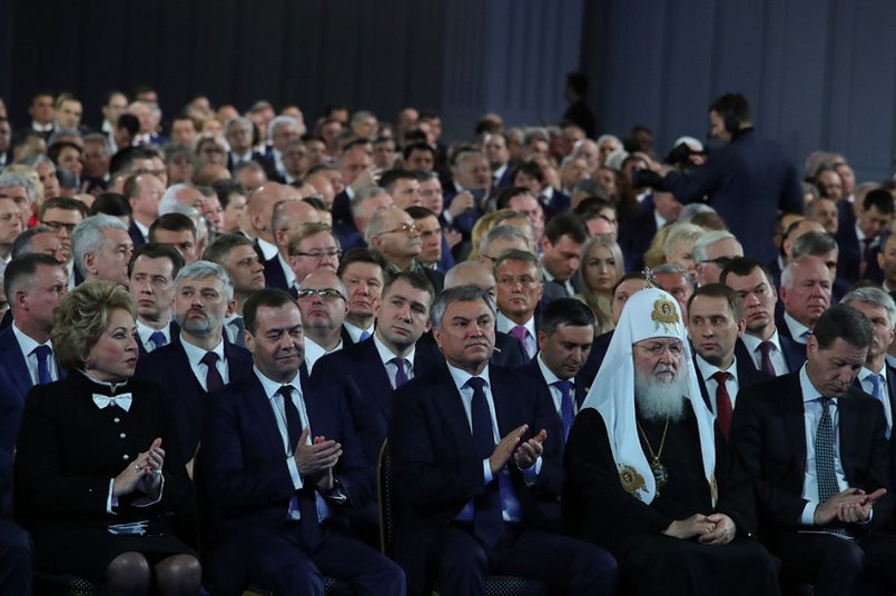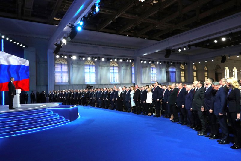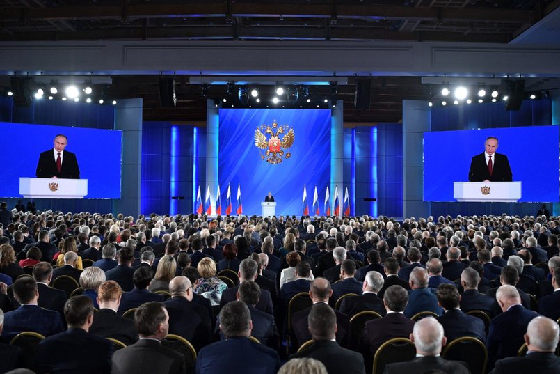 Владимир Путин: «Наступивший, 2020 год во многом рубежный. Это переход к третьему десятилетию 21-го века. Перед Россией стоят прорывные исторические задачи, и в их решении значим вклад каждого. Вместе, сообща мы обязательно изменим жизнь к лучшему. Часто говорю это слово „вместе“, потому что Россия — это мы. Я имею в виду не тех, кто находится в этом зале, или не только тех, кто в зале находится, а всех граждан нашей страны, потому что верю: успех определяет наша добрая воля к созиданию, к развитию, к достижению самых смелых планов, наш труд во имя своей семьи, своих близких, детей, их будущего, а значит, ради величия России, ради достоинства её граждан.»