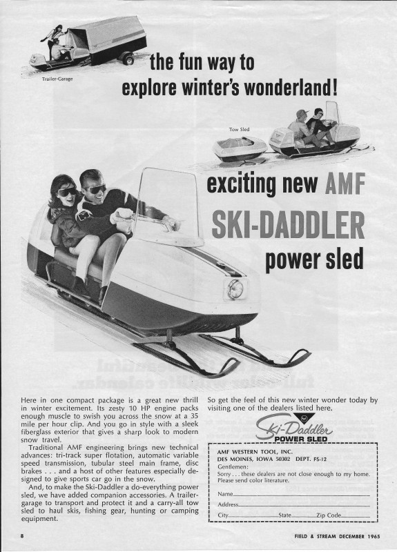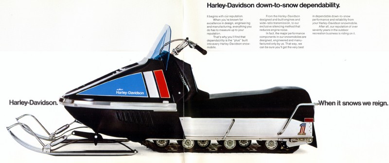 Все началось в 1960-х годах с западного центра разработок компании American Machine And Foundry Corporation (в те годы AMF владела Harley-Davidson), где были спроектированы снегоходы Sno-Clipper и Ski-Daddler Power Sled. Снегоходы AMF пользовались сравнительно неплохим спросом. Например, в 1966 году через сеть из 175 дилеров было реализовано 3000 единиц техники. В 1970 AMF выпустили новый снегоход Ski-Daddler. Примечательно, что новая модель производилась на заводе в Йорке, штат Пенсильвания, где в настоящее время собираю мотоциклы Harley-Davidson. Уже через год был произведен ребрендинг модельной линейки снегоходов и в компании посчитали, что легче будет реализовывать такую продукцию под брендом Harley Davidson. 1971-й стал последним модельным годом для оранжевой линии снегоходов AMF Ski-Daddler и первым для снегохода Harley-Davidson.