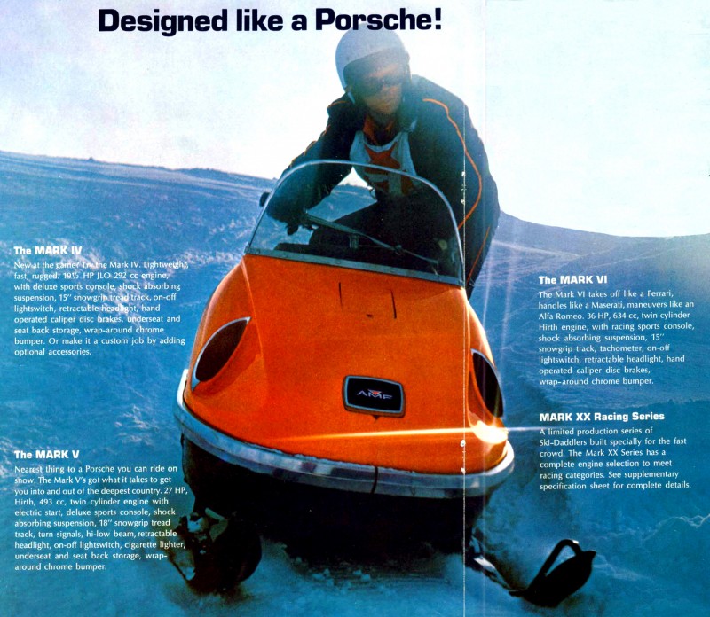 По своей конструкции двухтактный итальянский мотор снегоходов первых версий был аналогичен имевшимся на рынке Polaris и Bombardier – 398 куб. см и 30 лошадиных сил. Пожалуй, одной из немногих особенностей модели была «новая эксклюзивная трансмиссия с передаточным числом 4.5:1 для взрывного ускорения с места» и 10″ дисковый тормоз. Позднее на рынке появилась модификация с 433 кубовым двигателем, но выпускавшаяся под индексом 440, поскольку это было общее обозначение класса снегоходов. Кстати, версии снегоходов с индексом Y-398 и Y-440 комплектовались опциональным электрическим стартером. К сожалению, большой популярности снегоходы AMF Harley-Davidson не снискали, и в 1975 году их производство было свернуто. За пять лет было выпущено около 10000 снегоходов Harley, некоторые из них сейчас можно увидеть в различных представительствах H-D и музеях по всему миру.