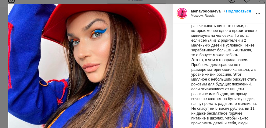Источник https://tsargrad.tv/news/bydlo-nachnjot-rozhat-radi-milliona-vodonaeva-snova-oskorbila-narod-poputno-raskritikovav-plan-putina_234416
