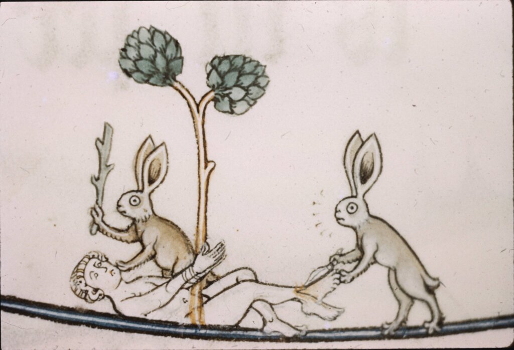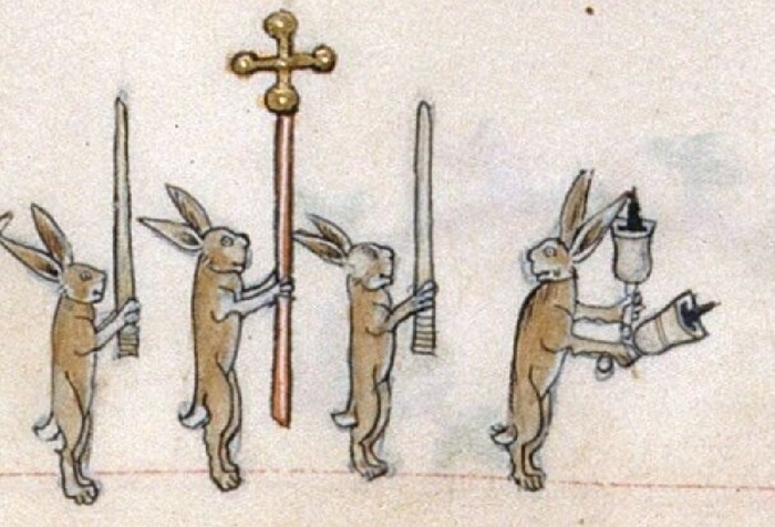 Вот только возникает вопрос: почему именно кроликов (или зайцев) средневековые художники-миниатюристы избрали главными персонажами своих маргиналий?