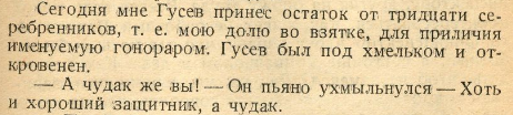 Нет, по поводу той цитаты, там после оправдательного приговора уже гонорар получил, оправдали по факту хищения соцсобственности, который (факт) все-таки был. Прокуратура плохо сработала.