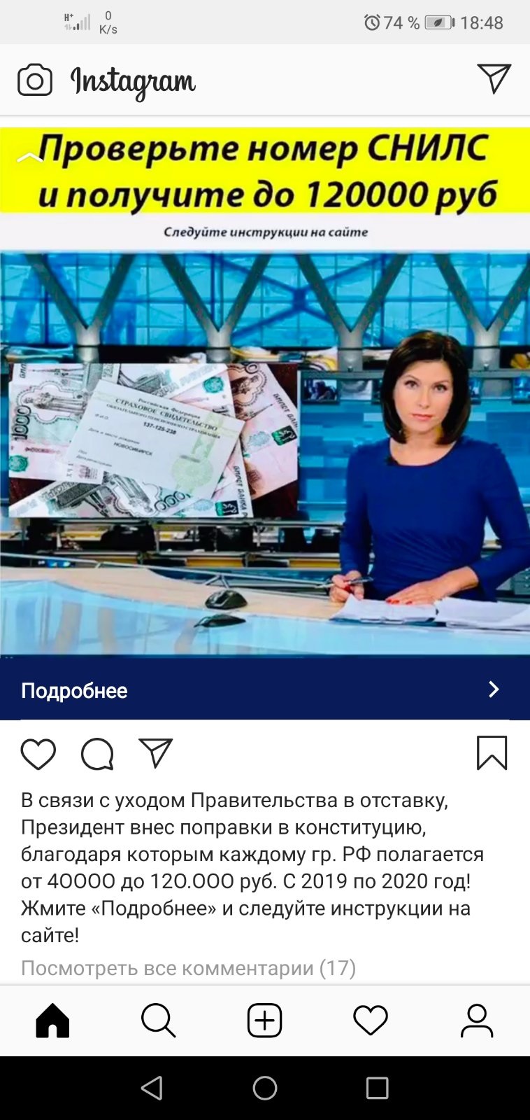 После того как поверившая преступникам жертва перейдет по ссылке, ей предложат ввести номер СНИЛС, чтобы узнать, какую сумму она получит. Сумма в каждом случае оказывается близкой к максимальному пределу. Но сразу же указывается на один нюанс: чтобы получить деньги, необходимо заплатить «пошлину» или «комиссию». Суммы, как правило, варьируются от 1 000 до 3 000 рублей.