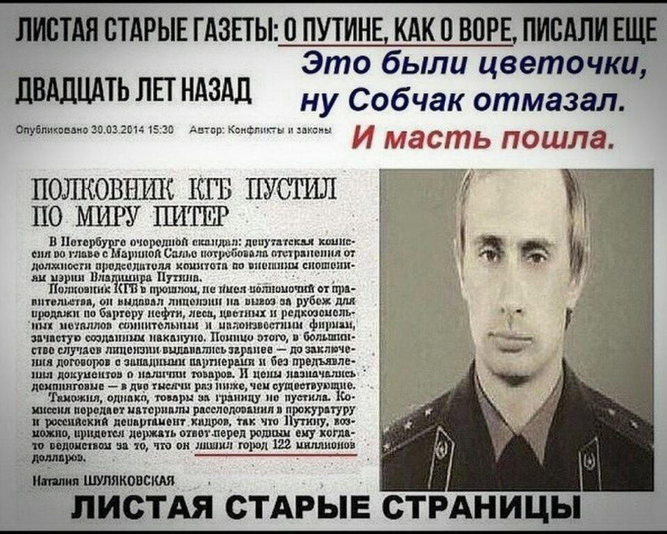 Вячеслав, разве можно произносить такие слова о Путине?! О ужас, сейчас увидите как почти вся русофобская помойка бросится на вас точно передней предстал тот же ПУТИН.
